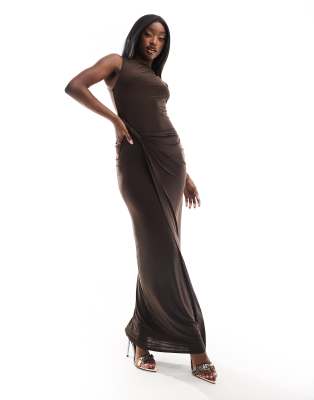 ASOS DESIGN - Robe longue effet drapé à encolure bateau - Chocolat