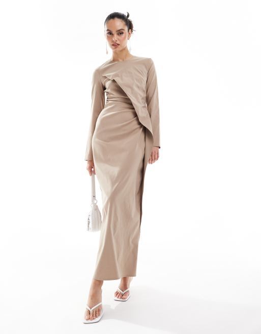 ASOS DESIGN - Robe longue en bengaline froncée à la taille - Champignon