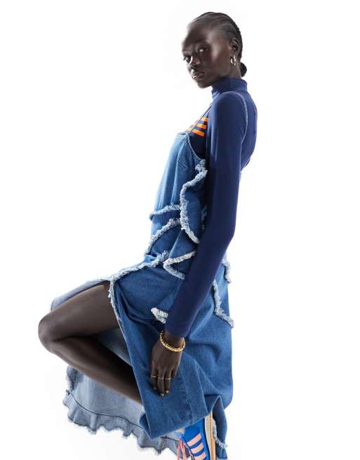 ASOS DESIGN - Robe longue en denim à coupe en biais - Bleu moyen