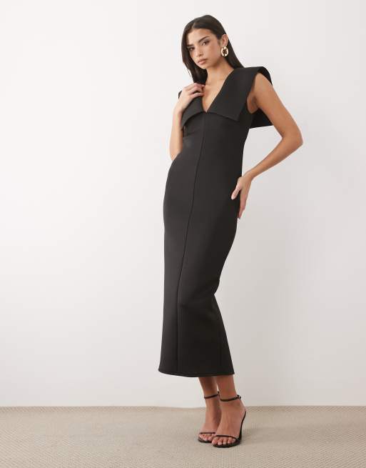 ASOS DESIGN - Robe longue en imitation néoprène à manches cape et bordures aux épaules - Noir