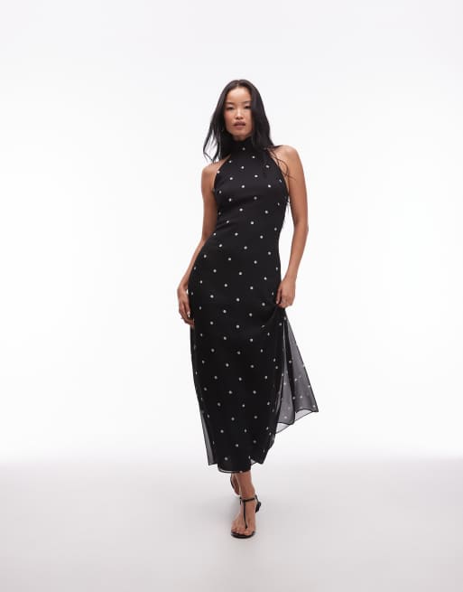 ASOS DESIGN - Robe longue en mousseline à col montant - Noir à pois