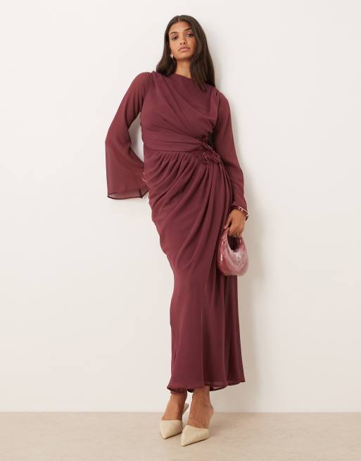 ASOS DESIGN - Robe longue en mousseline à détail floral brodé effet 3D sur la hanche - Fruits rouges