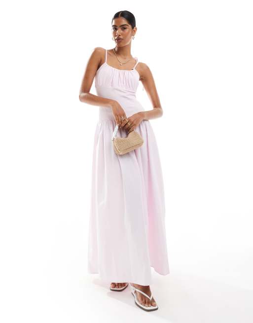 ASOS DESIGN - Robe longue en popeline mélangée avec buste froncé