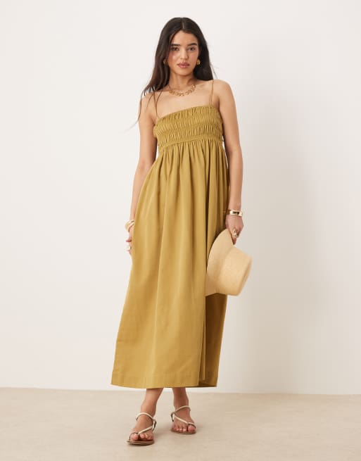 ASOS DESIGN - Robe longue en satin de coton avec buste froncé - Mousse