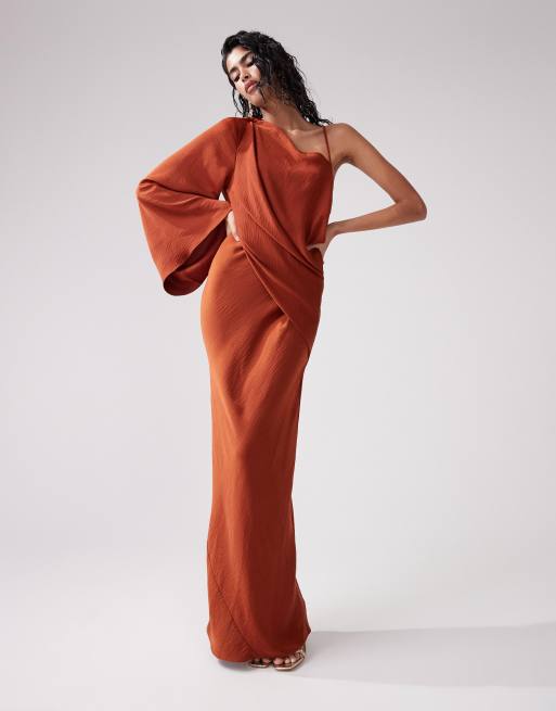 ASOS DESIGN - Robe longue et asymétrique avec corsage drapé - Rouille