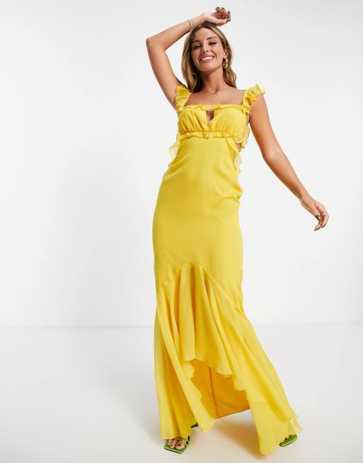 ASOS DESIGN - Robe longue et douce à volants - Jaune