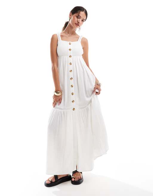 ASOS DESIGN - Robe longue froncée boutonnée en tissu double avec nœud dans le dos - Crème fouettée