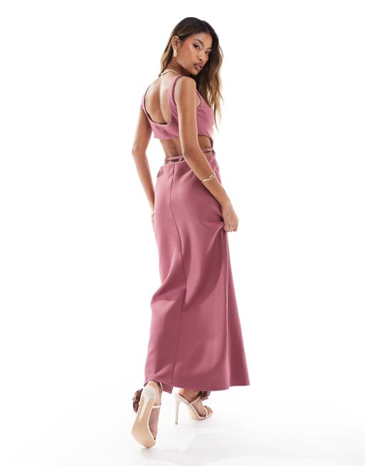 ASOS DESIGN - Robe longue moulante à encolure carrée avec lanière dans le dos - Rose
