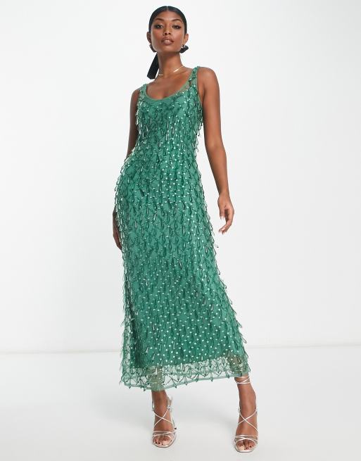 ASOS DESIGN - Robe longue ornée de pierres - Vert forêt