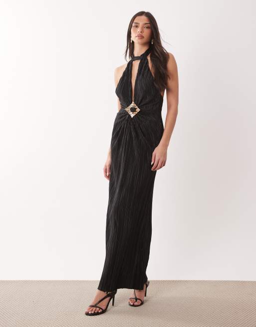 ASOS DESIGN - Robe longue plissée à dos nu et ornement - Noir