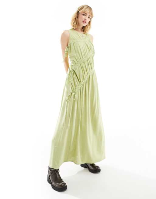 ASOS DESIGN - Robe longue sans manches en lin à fronces - Sauge