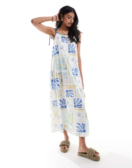 ASOS DESIGN - Robe longue trapèze à imprimé mosaïque estival et bretelles contrastantes