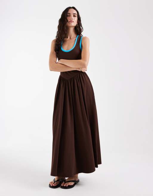 ASOS DESIGN - Robe mi-longue à bords contrastants - Chocolat/sarcelle
