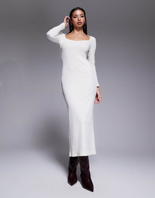 ASOS DESIGN - Robe mi-longue à décolleté en cœur et manches ballon - Blanc hiver