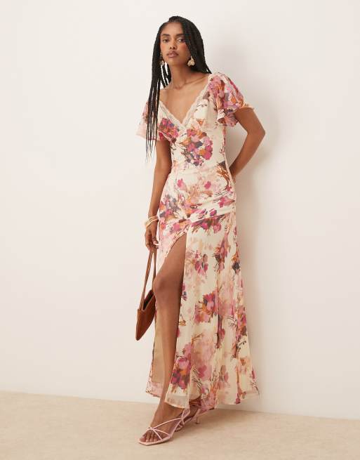 ASOS DESIGN - Robe mi-longue à fleurs en mousseline avec empiècement en dentelle