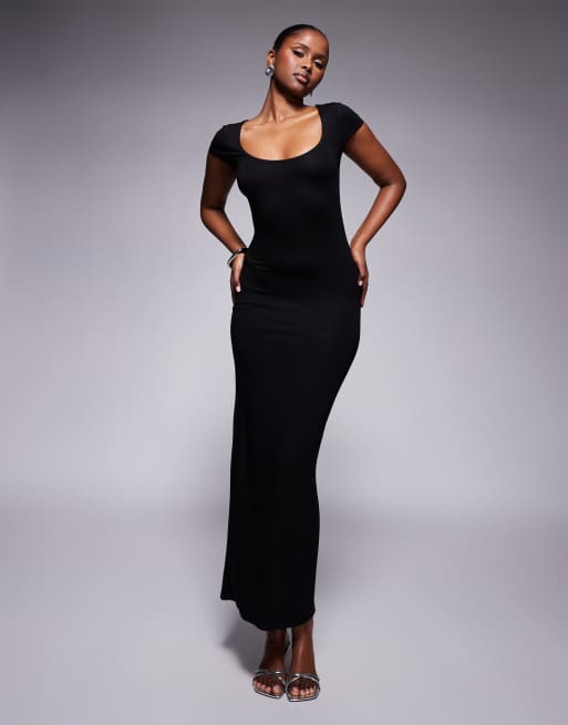 ASOS DESIGN - Robe mi-longue à mancherons et encolure dégagée - Noir