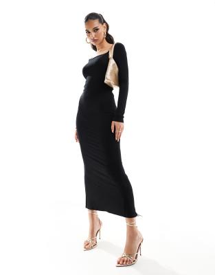 ASOS DESIGN - Robe mi-longue à manches longues et encolure carrée - Noir