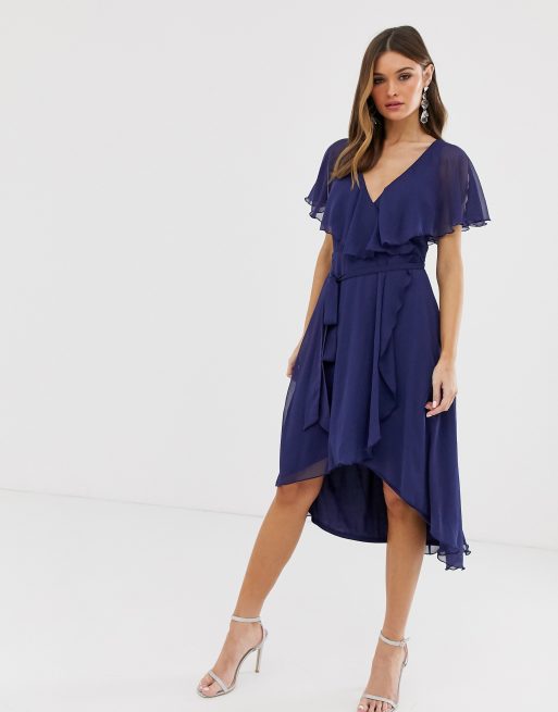 ASOS DESIGN - Robe mi-longue à ourlet plongeant avec cape au dos - Bleu marine