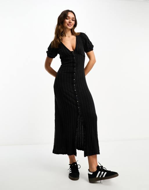 ASOS DESIGN - Robe mi-longue boutonnée à volants - Noir