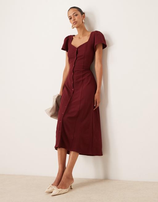 ASOS DESIGN - Robe mi-longue boutonnée nouée dans le dos - Rouge cerise