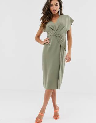 ASOS DESIGN - Robe mi-longue drapée et torsadée devant