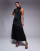ASOS DESIGN - Robe mi-longue droite satinée à coupe asymétrique et ourlet frangé - Noir