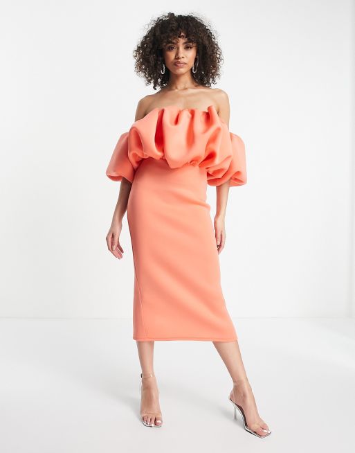 ASOS DESIGN - Robe mi-longue effet boule - Corail