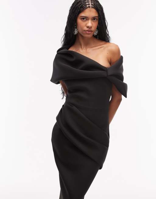 ASOS DESIGN - Robe mi-longue en imitation néoprène avec encolure bardot sculpturale - Noir