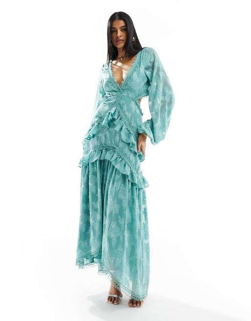 ASOS DESIGN - Robe mi-longue en jacquard fleuri à découpes - Vert d'eau