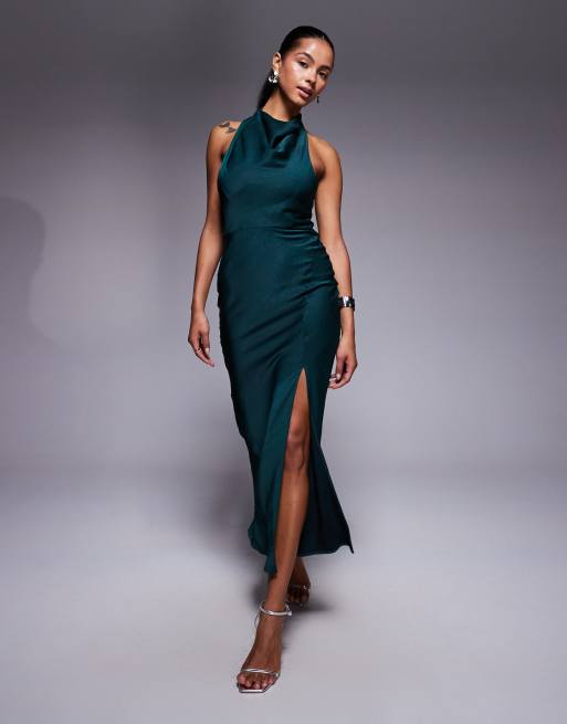ASOS DESIGN - Robe mi-longue en satin à col montant avec détail croisé - Sarcelle