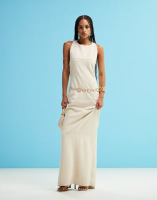 ASOS DESIGN - Robe mi-longue en suédine avec drapé dans le dos - Crème