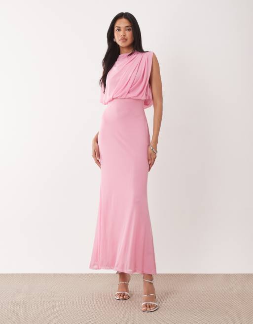 ASOS DESIGN - Robe mi-longue en tulle à mancherons et corsage bouffant asymétrique - Rose