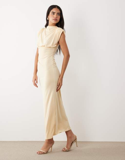 ASOS DESIGN - Robe mi-longue froncée à épaulettes - Citron