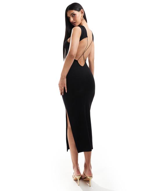 ASOS DESIGN - Robe mi-longue sans manches style dos ouvert avec liens à nouer - Noir