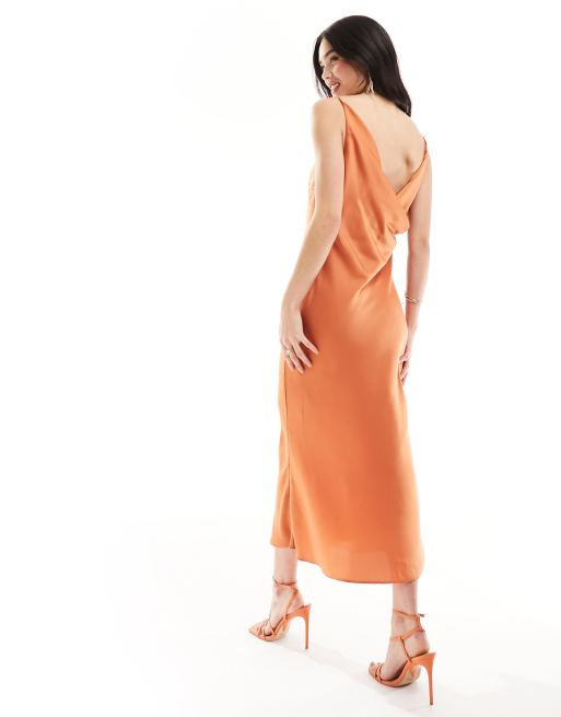 ASOS DESIGN - Robe mi-longue satinée à encolure carrée et dos bénitier - Rouille