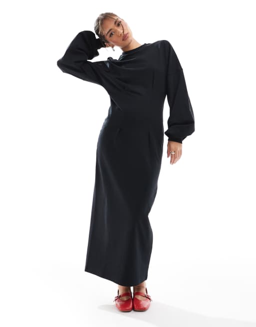 ASOS DESIGN - Robe molletonnée mi-longue ajustée à la taille - Noir
