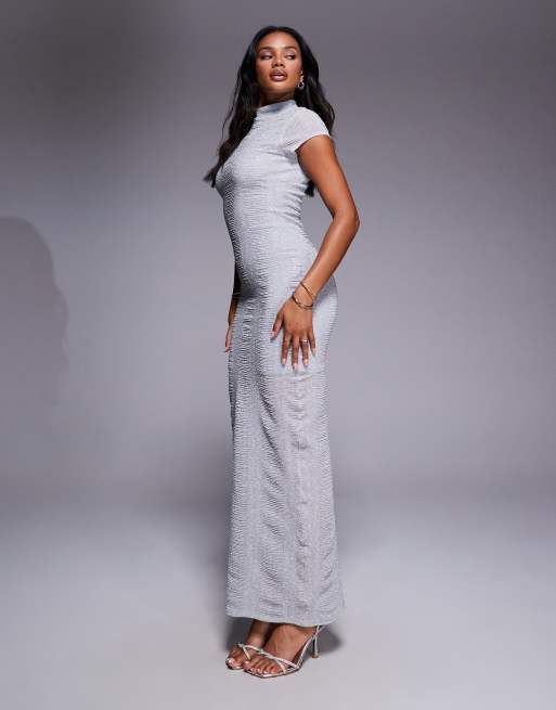 ASOS DESIGN - Robe moulante mi-longue à mancherons en tissu côtelé pailleté - Argenté