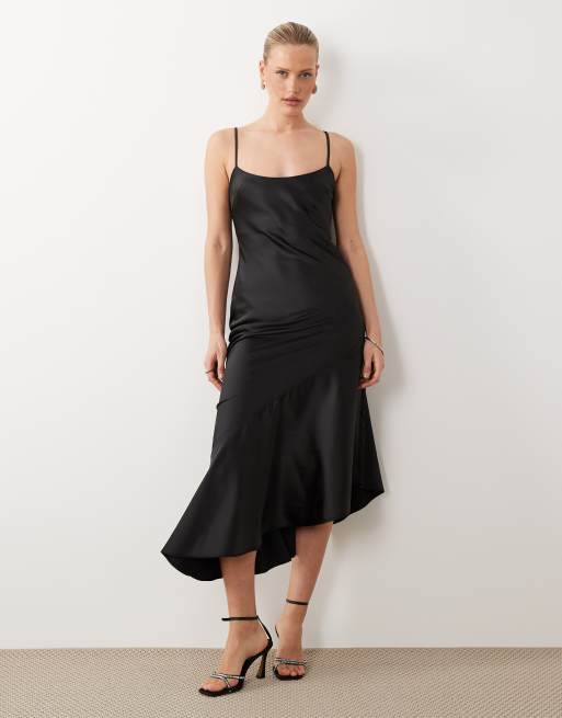 ASOS DESIGN - Robe nuisette en satin à ourlet asymétrique - Noir