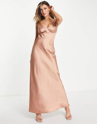 ASOS DESIGN - Robe nuisette longue en satin - Vison