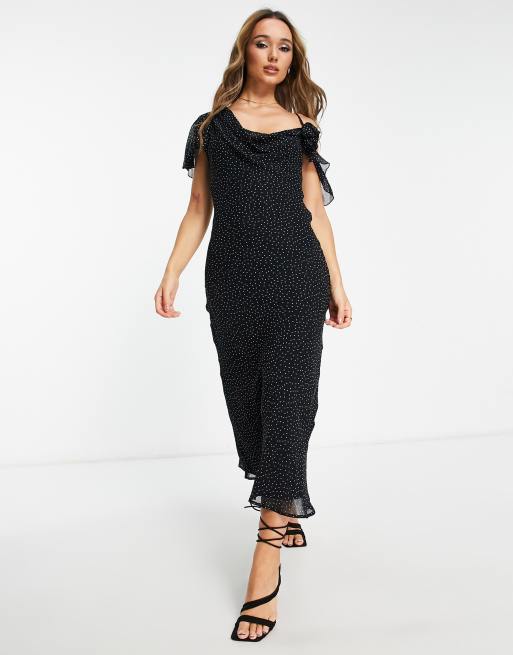 ASOS DESIGN - Robe nuisette mi-longue à pois avec col bénitier et bretelle - Noir