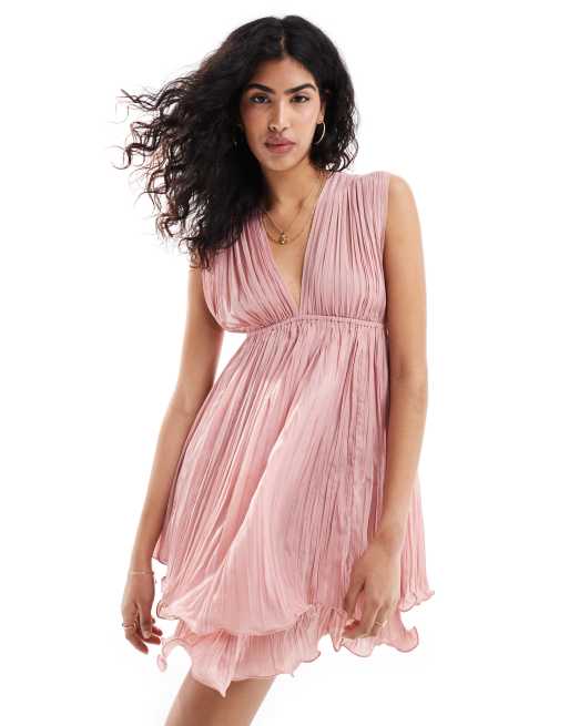 ASOS DESIGN - Robe patineuse courte plissée à encolure carrée - Rose sombre