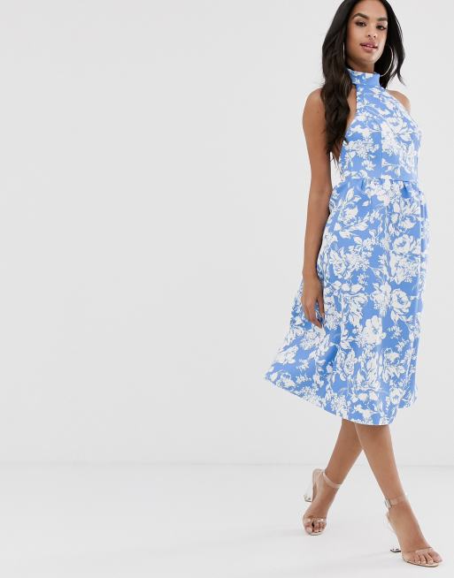 ASOS DESIGN - Robe patineuse dos nu mi-longue à fleurs - Bleu