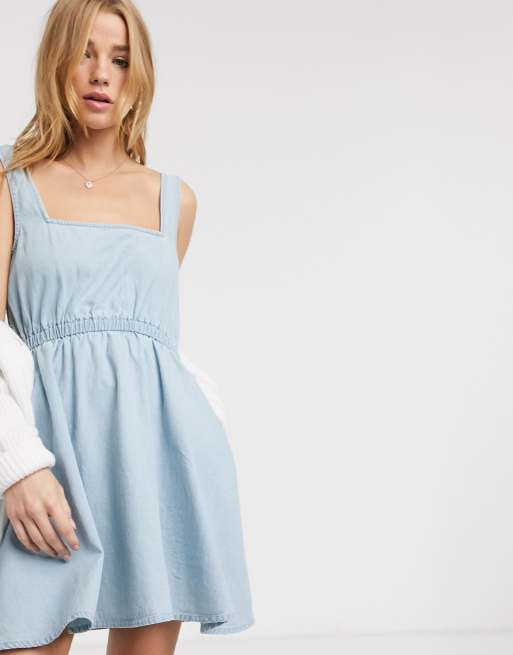 ASOS DESIGN - Robe patineuse en jean souple à encolure carrée - Bleu délavé clair