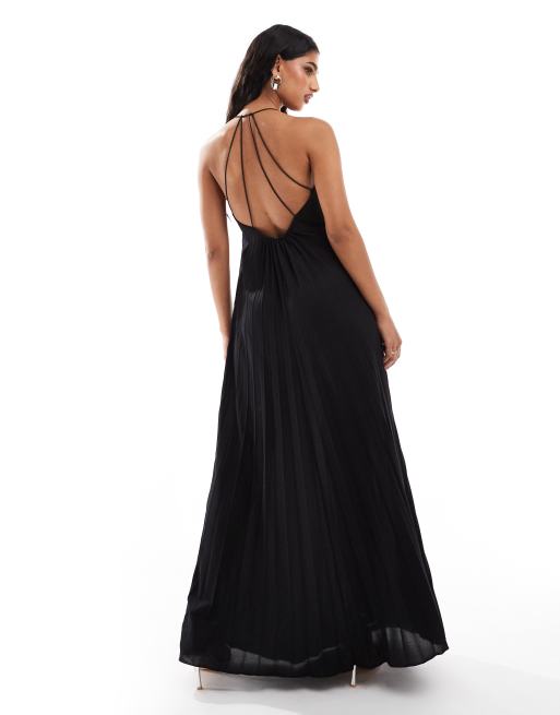 ASOS DESIGN - Robe plissée longue à encolure dégagée et dos nu - Noir