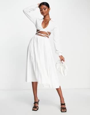 ASOS DESIGN - Robe plissée longueur mollet avec corsage à lanières - Blanc