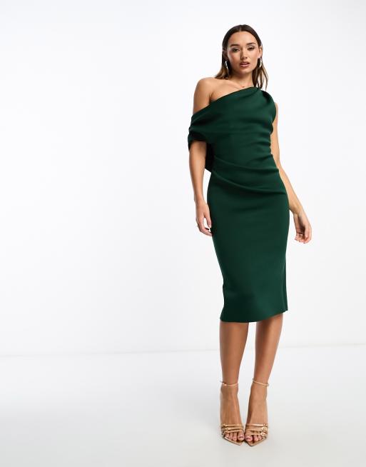 ASOS DESIGN - Robe plissée mi-longue à épaules tombantes en néoprène - Vert