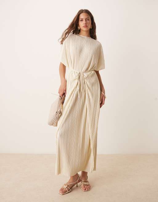 ASOS DESIGN - Robe portefeuille longue et plissée avec manches courtes et détail noué - Jaune citron