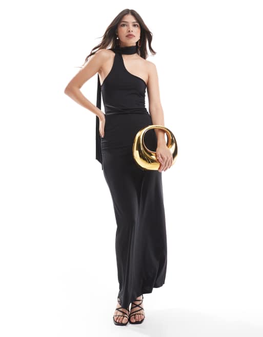 ASOS DESIGN - Robe près du corps mi-longue avec détail foulard - Noir