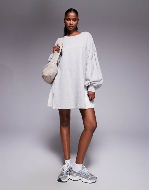ASOS DESIGN - Robe pull courte trapèze en coton - Gris chiné