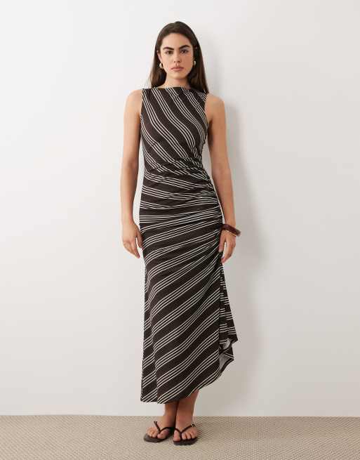 ASOS DESIGN - Robe sans manches mi-longue à rayures avec fronces nouées